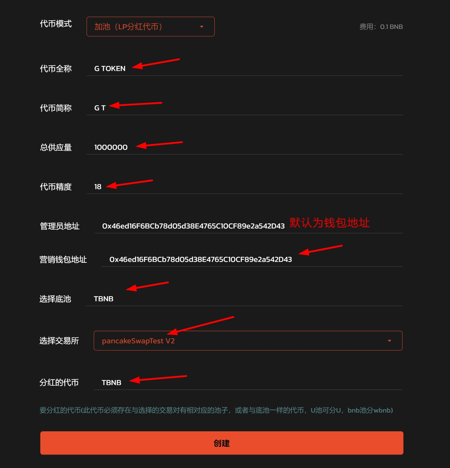 依次填写代币信息,假设我们创建一个代币叫——“G TOKEN”,填写如下: