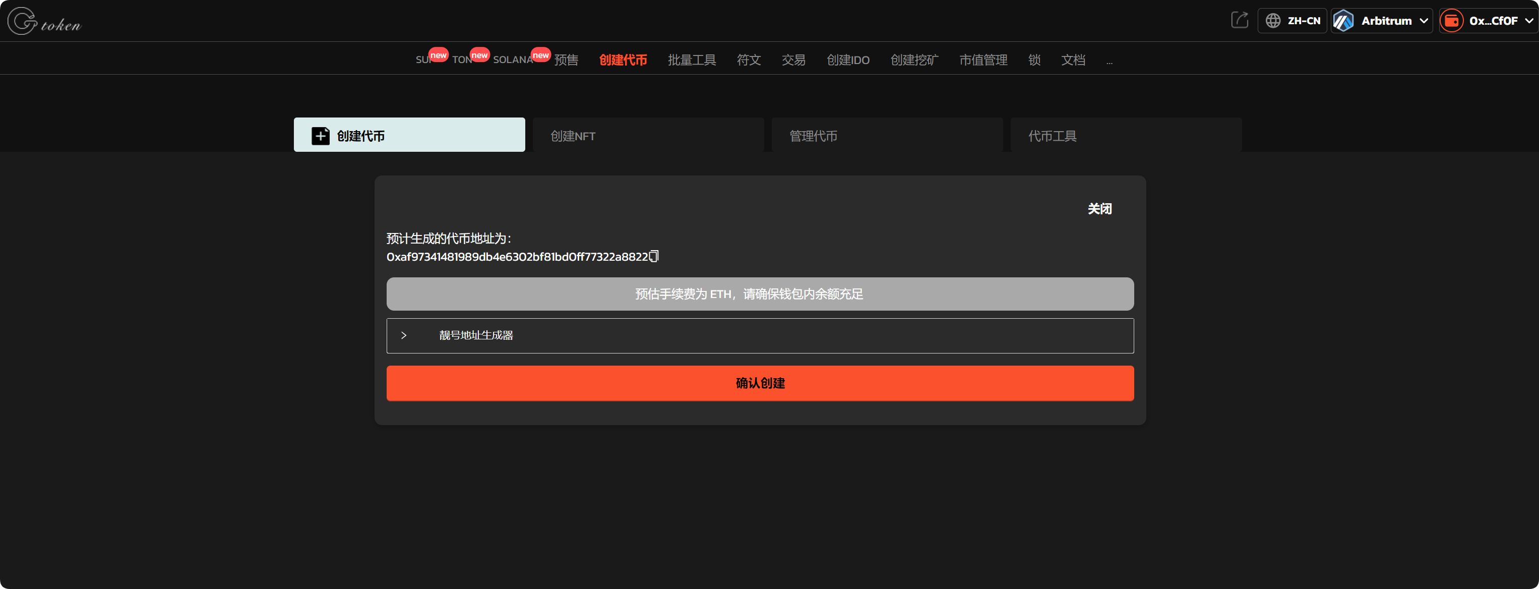 ARB发币工具：<https://www.gtokentool.com/tokenfactory>
