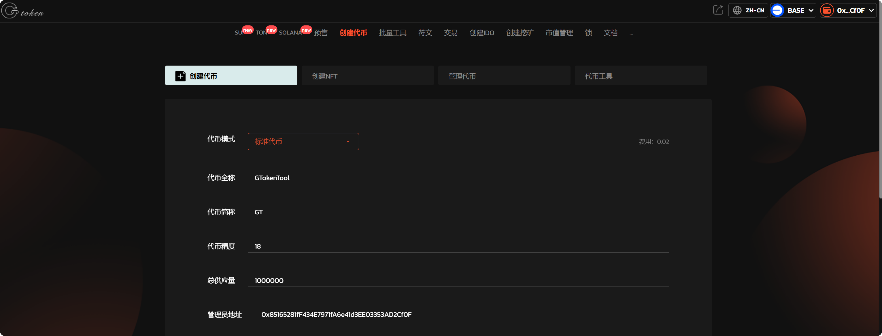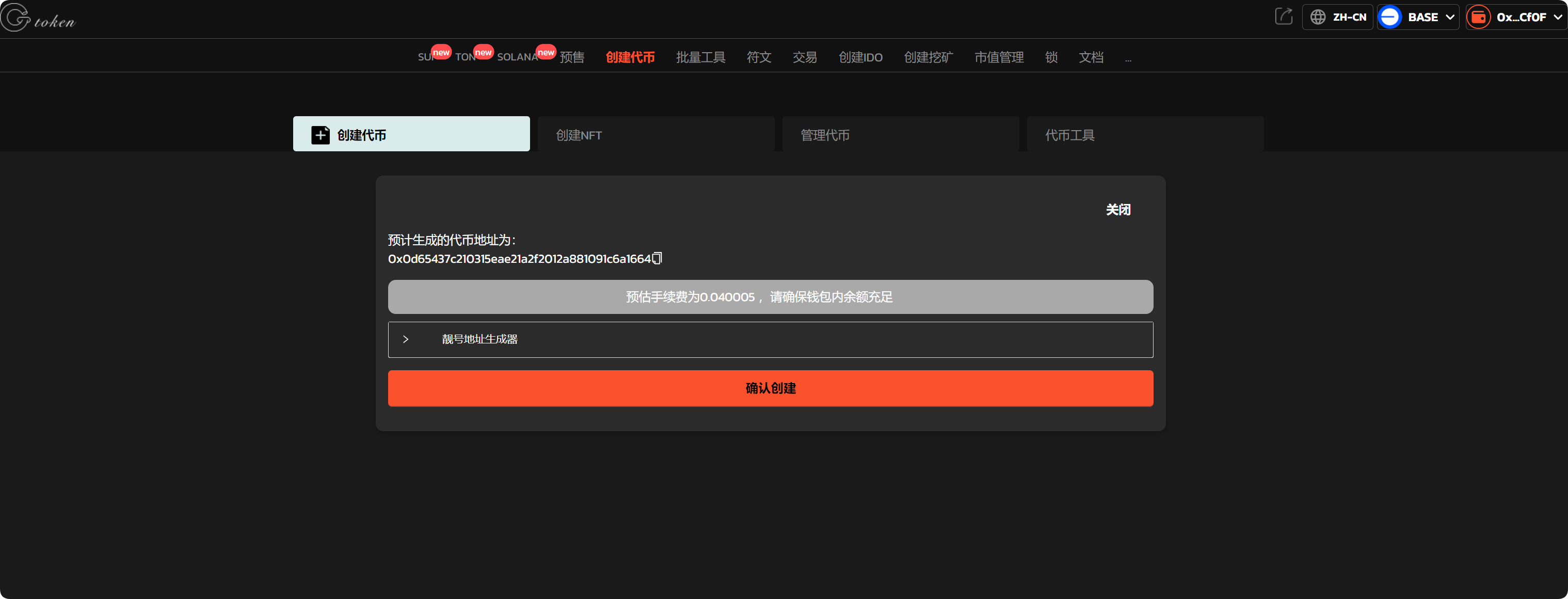 Base发币工具：<https://www.gtokentool.com/tokenfactory>