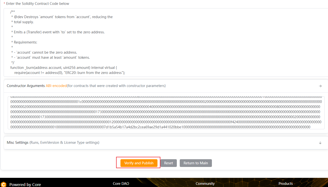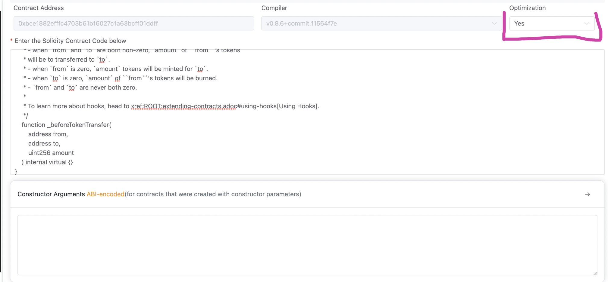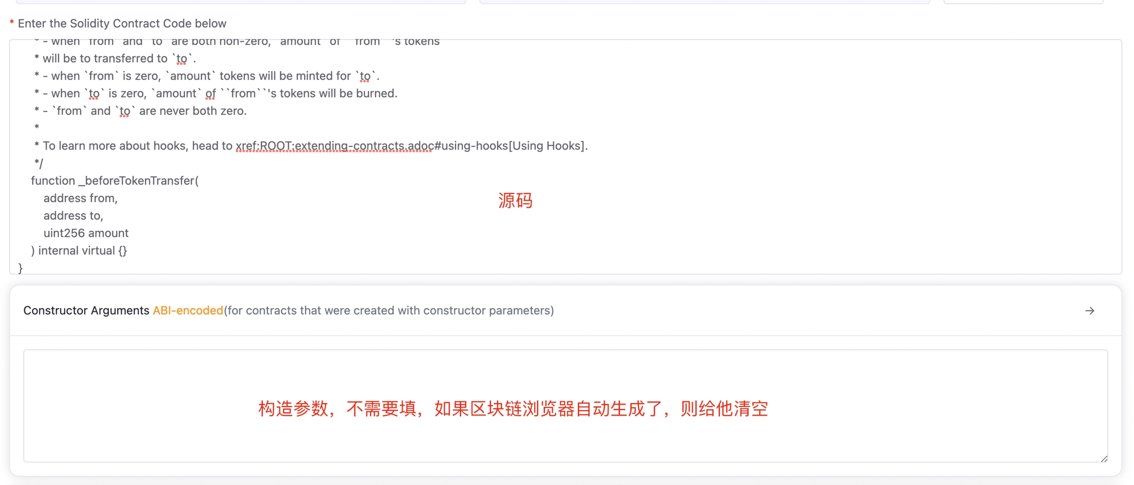 注意:本平台不需要构造参数即可开源,如果区块链浏览器自动生成了,则给他清空。