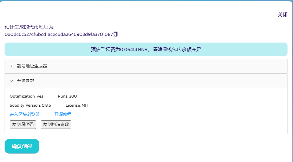 复制开源参数面板源代码以及构造参数对应填入源代码,不想要广告的合约代码最上面的平台网址删除就行了。
