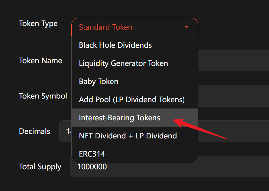 Click on the dropdown menu and select "Interest-Bearing Tokens".