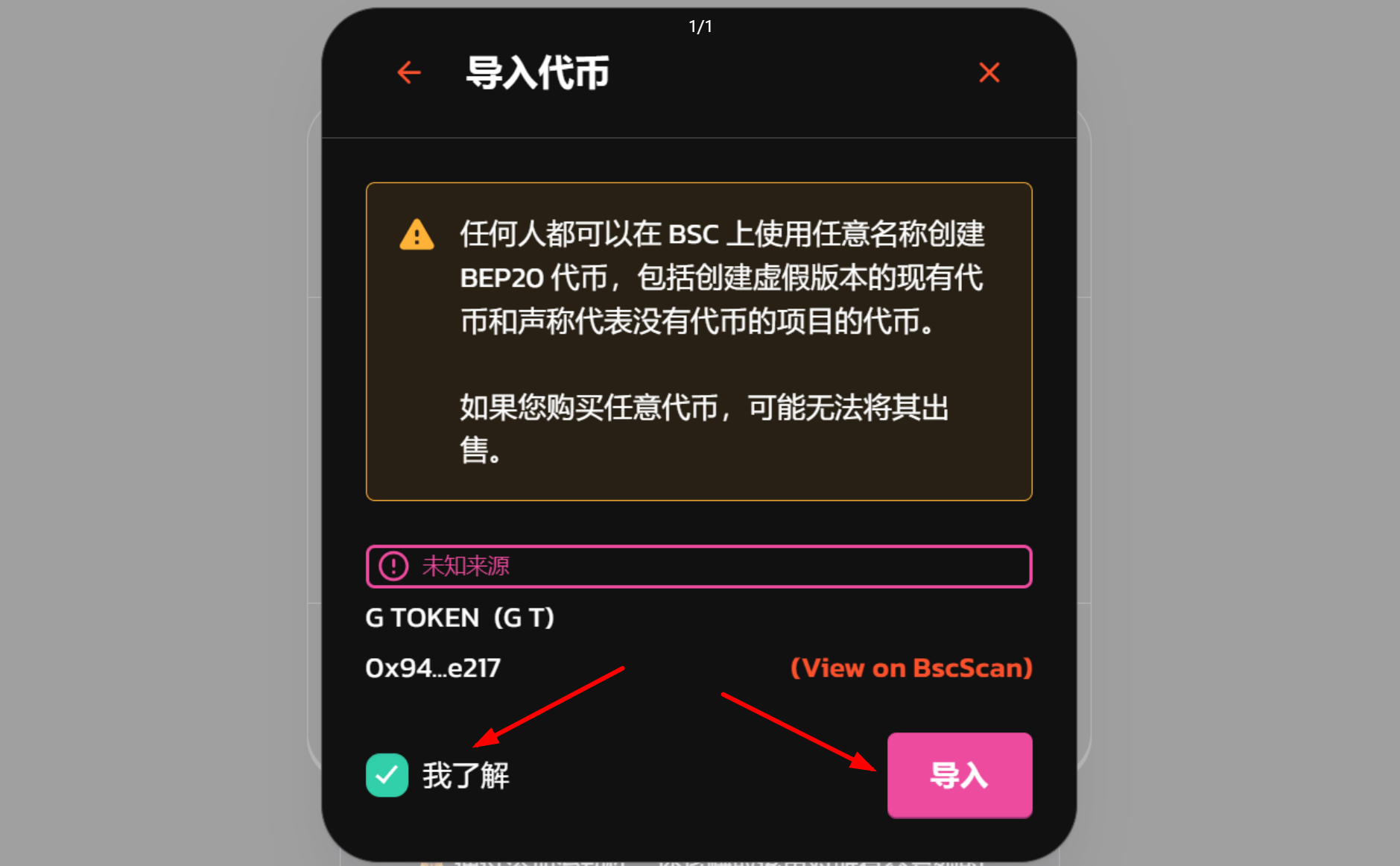 Enter the token address and click the "`Import`" button.
