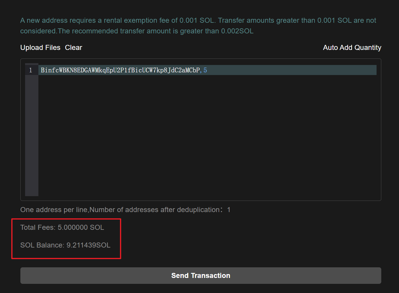 After importing the wallet address, you can click "`Auto Add Quantity`" to set the batch transfer amount.