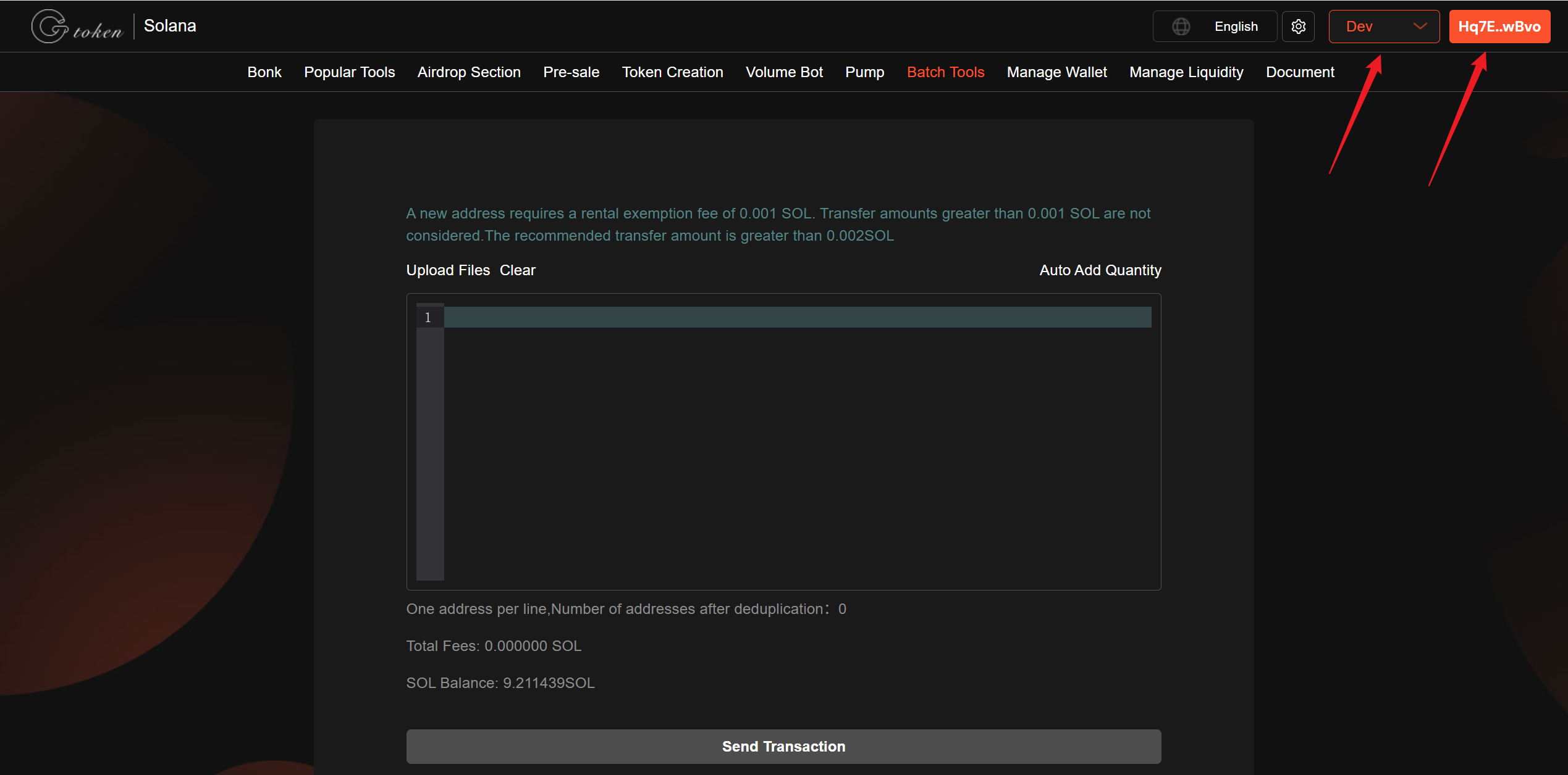 Transfer SOL Link: <https://sol.gtokentool.com/batchTool/batchTransfer/SOL>