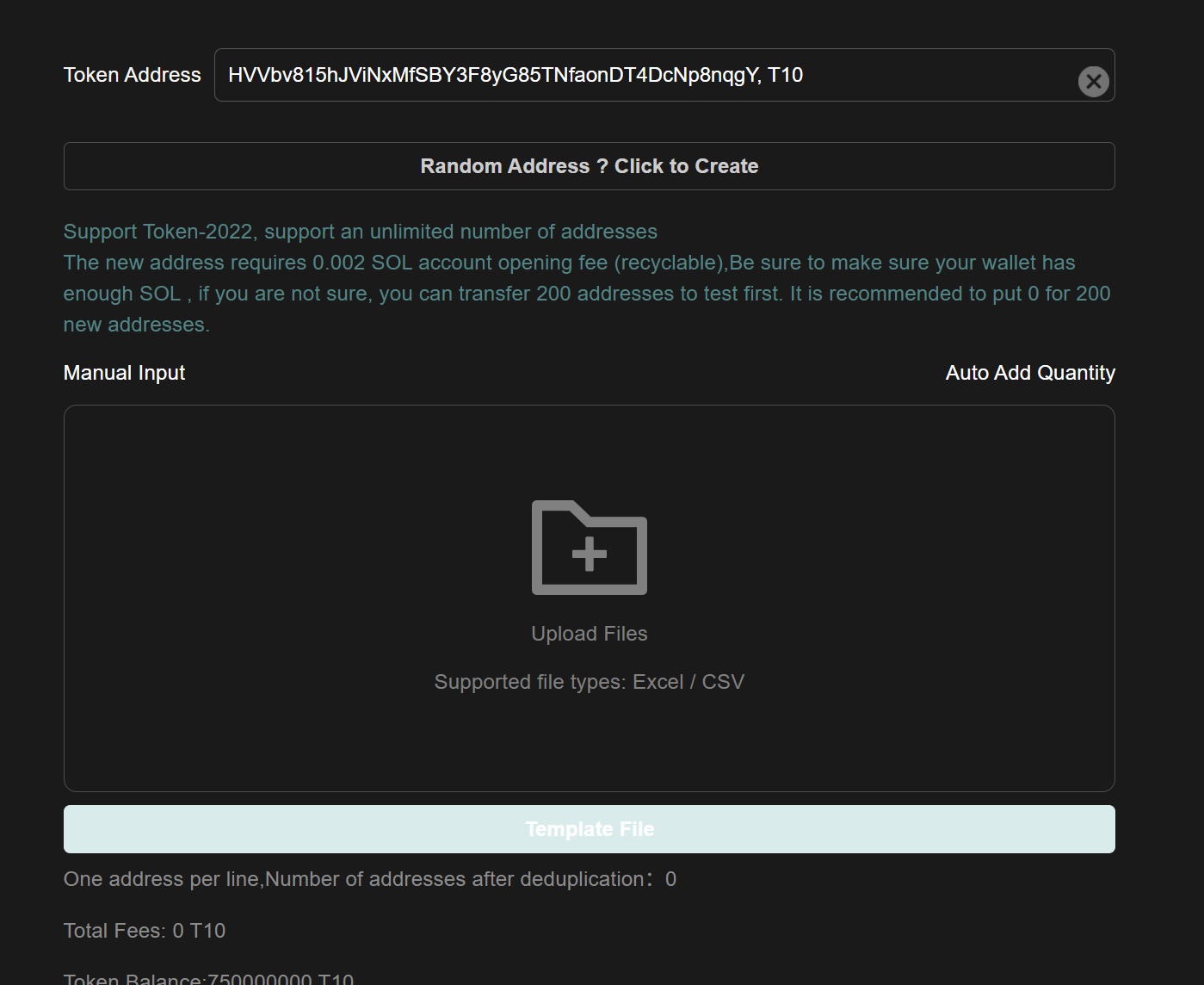 If you choose to upload a file to import the address, you can click "Upload File" to import the wallet address file. You can also download the template to refer to the file format.
