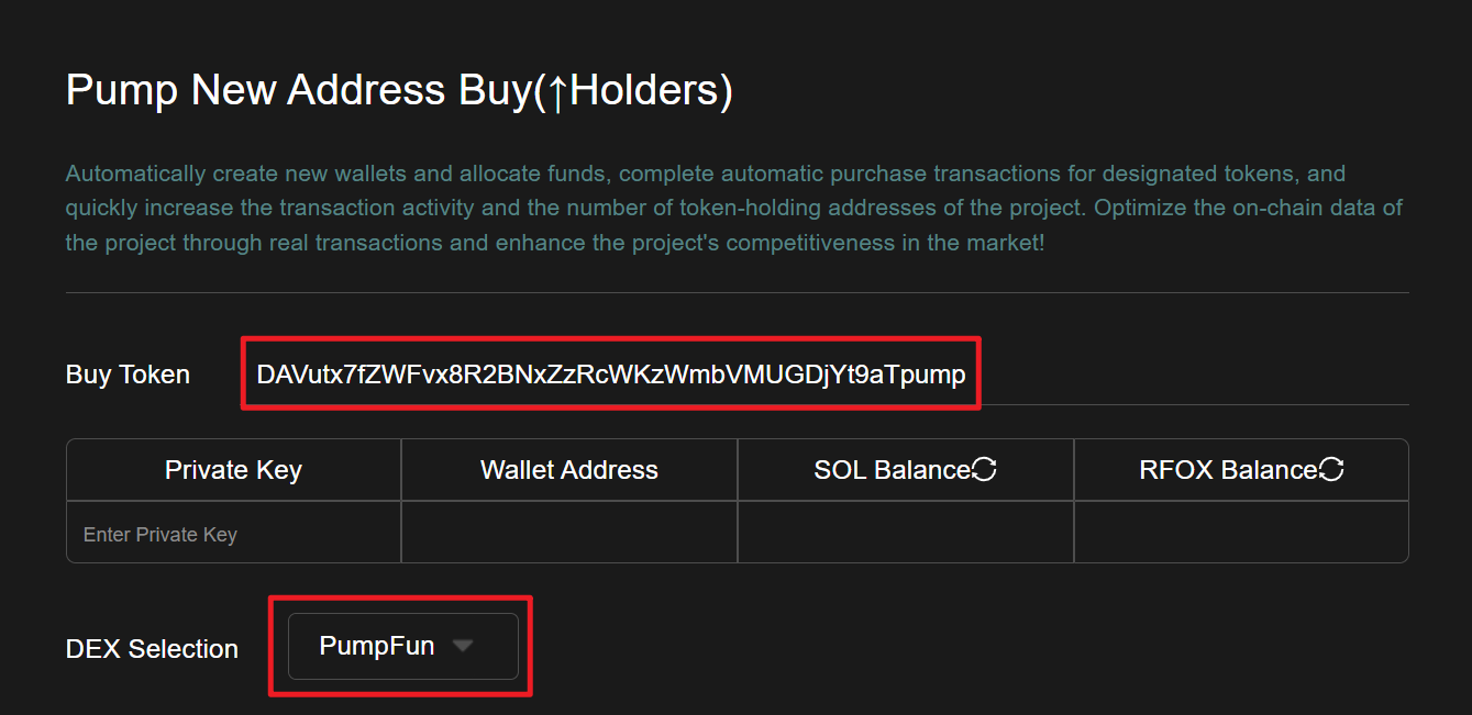 Solana pump new address buy link: <https://sol.gtokentool.com/pump/pumpHolderMaker>