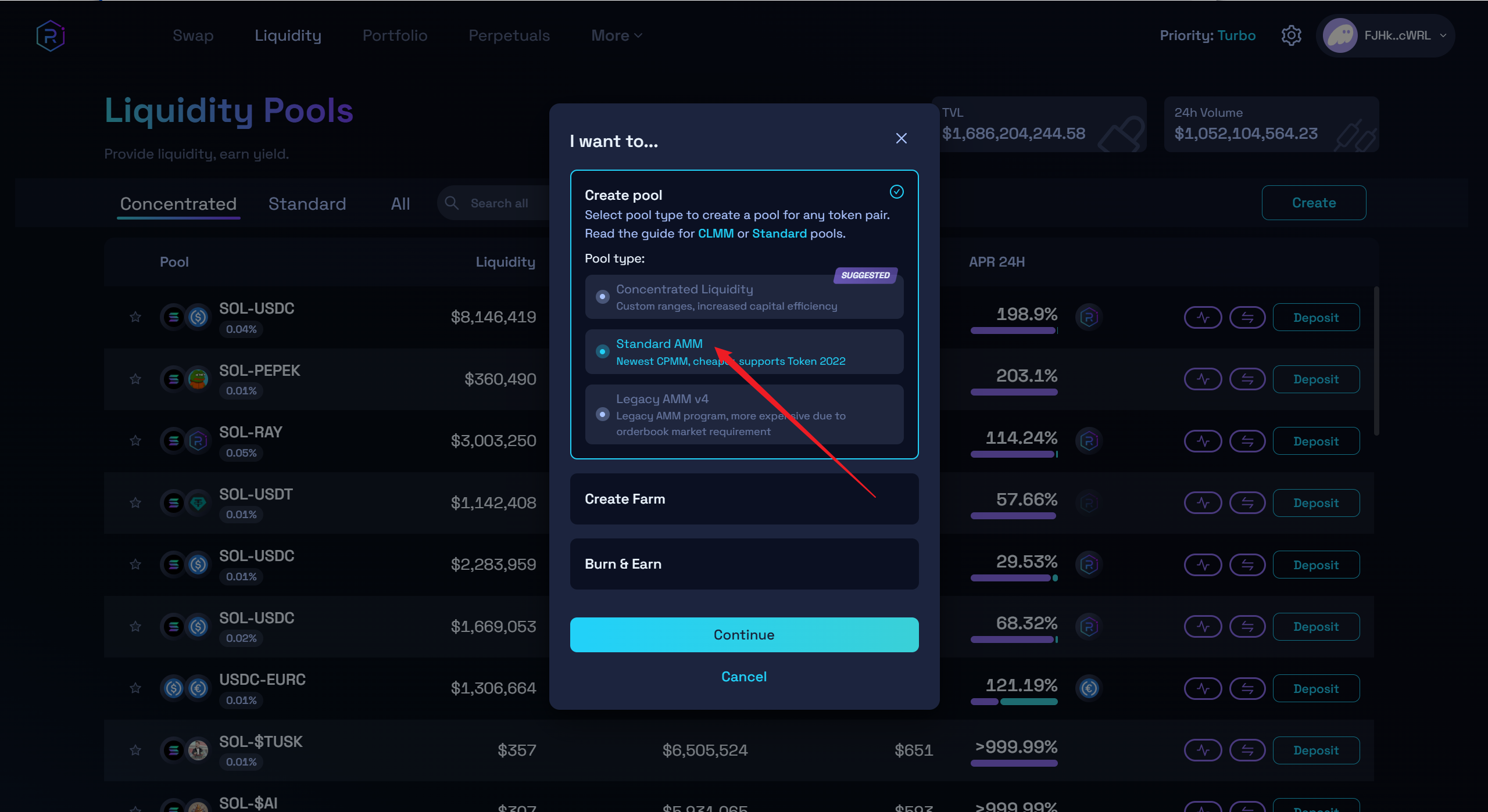 Once opened, select the Standard AMM pool and proceed to the next step.