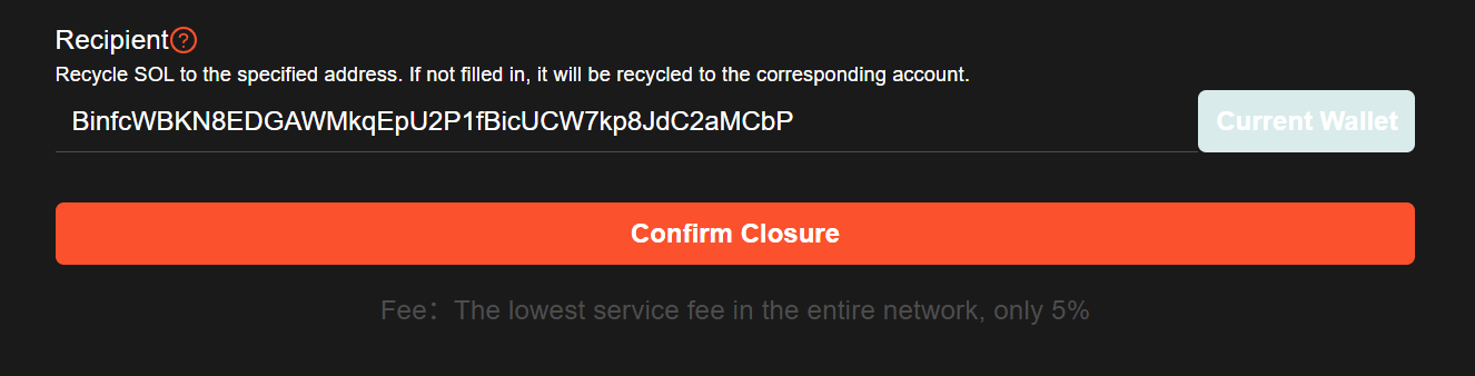 ### 5. Fill in the recipient address for recycling SOL.