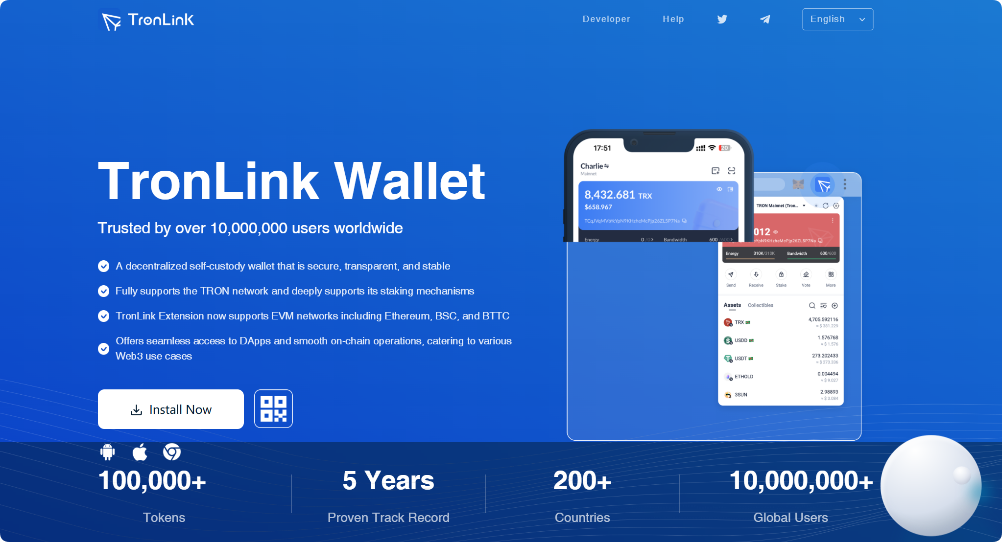 The Chinese name of TronLink wallet is Bobao Wallet. It is a digital currency wallet based on TRON, designed to provide users with the function of secure storage of assets. TronLink said that it adopts advanced security measures to protect users' digital assets from unauthorized access, and transaction processing is fast and reliable. The wallet can support multiple assets. For example, TronLink supports a wide range of TRON-based digital assets, including TRX, TRC10 and TRC20 tokens.