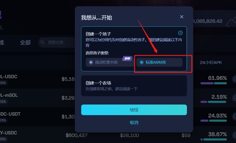 次に進む前に、標準的なAMMプールを選択してください
