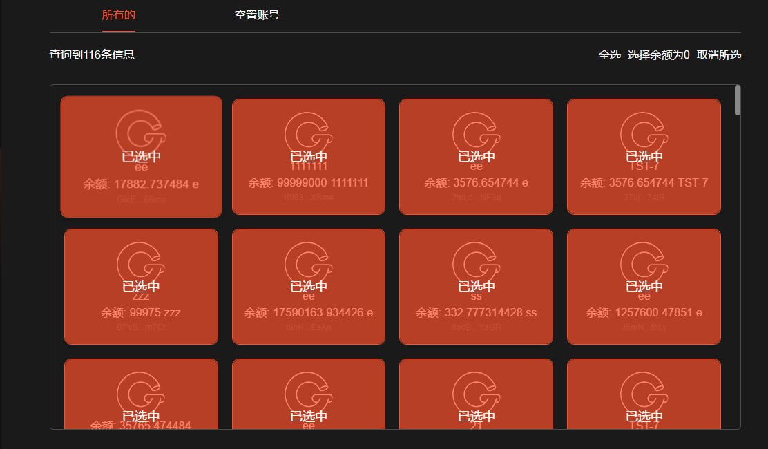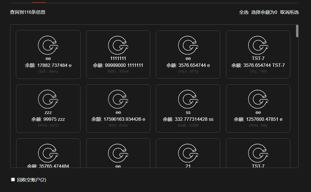 ### 3. 閉じる必要があるアカウントを選択し、賃料の回収を行います。一般的なタイプは空きアカウントおよび通常のトークンアカウントです。