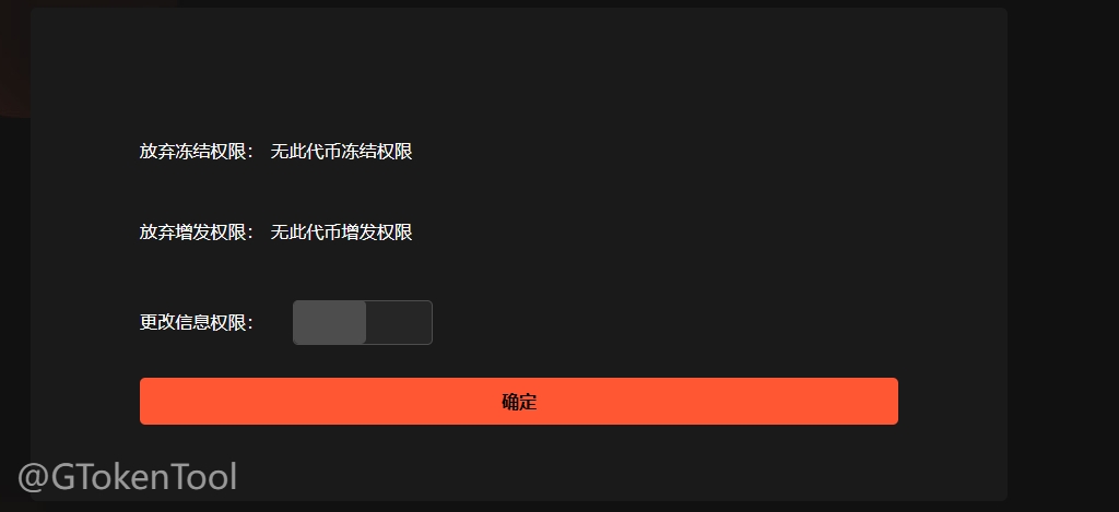 G Tokenの発行トークンであれば、ロゴがアップロードされている場合、これら3つの権限が自動的に付与されます。他のプラットフォームで発行されたトークンの場合、2つの権限または1つの権限が付与される可能性があります。もちろん、どこでトークンを発行するにしても、G Tokenのツールを使用して権限を放棄することができます。