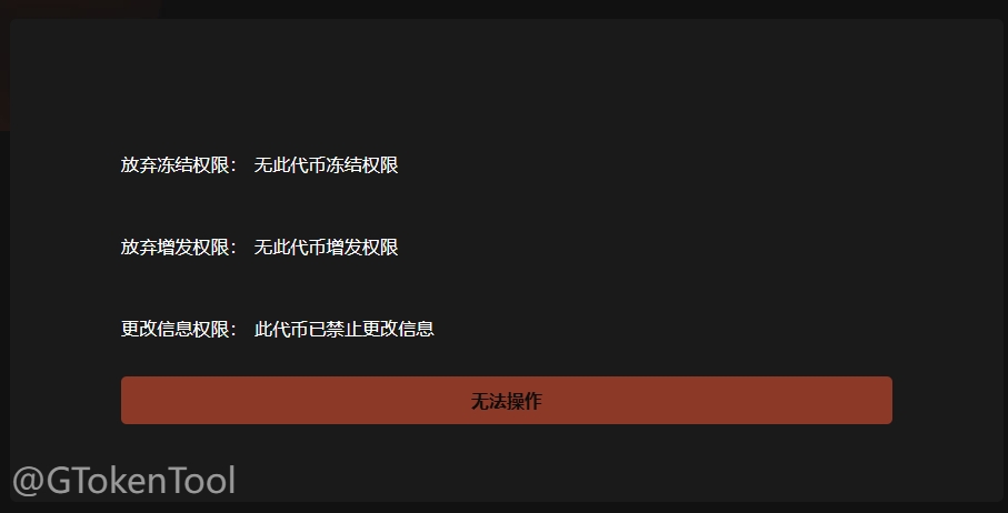 トークンの権限が「このトークンの凍結/増発/変更権限がありません」と表示された場合、現在のウォレットアドレスにはそのトークンの対応する権限がありませんので、その権限を放棄することはできず、所有する権限のみを操作できます。