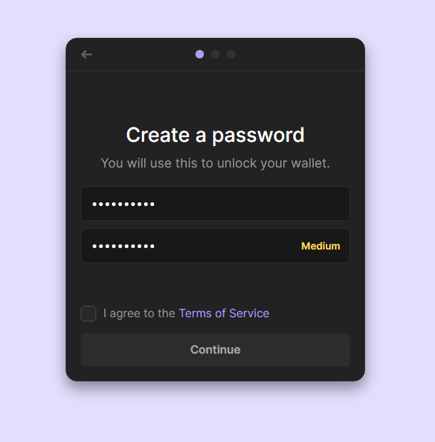 5. その後、ウォレットのパスワードを作成する必要があります。作成が完了したら、メモリワードを保存してください。
