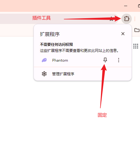 6. これで幻影ウォレットのインストールと登録が完了しました。右上角のプラグインアイコンを探してウォレットを見つけ、固定することができます。