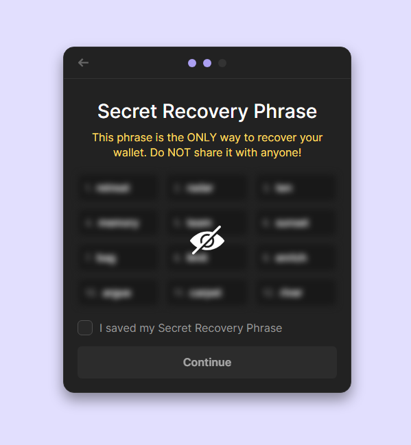 1. バックアップメモリワード メモリワードはウォレットを復元する唯一の方法であり、オフラインで保存してください。