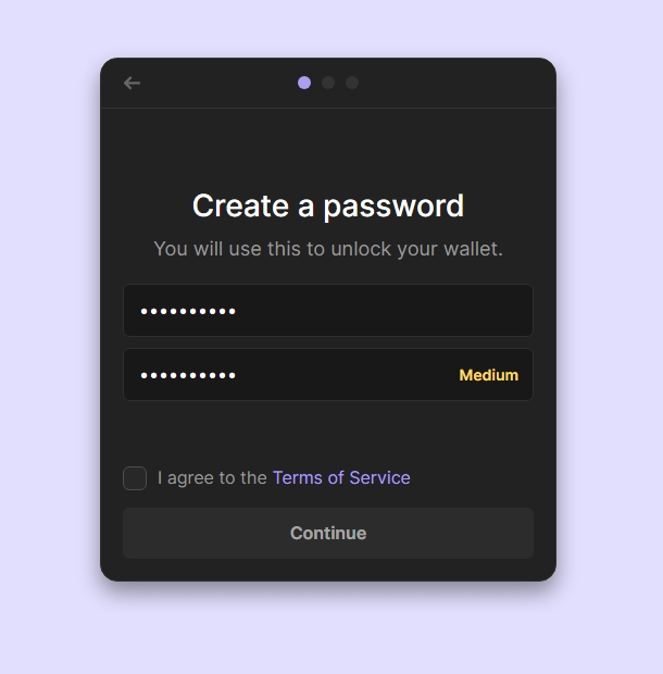 その後、ウォレットのパスワードを作成する必要があります。作成が完了したら、メモリワードを保存してください。
