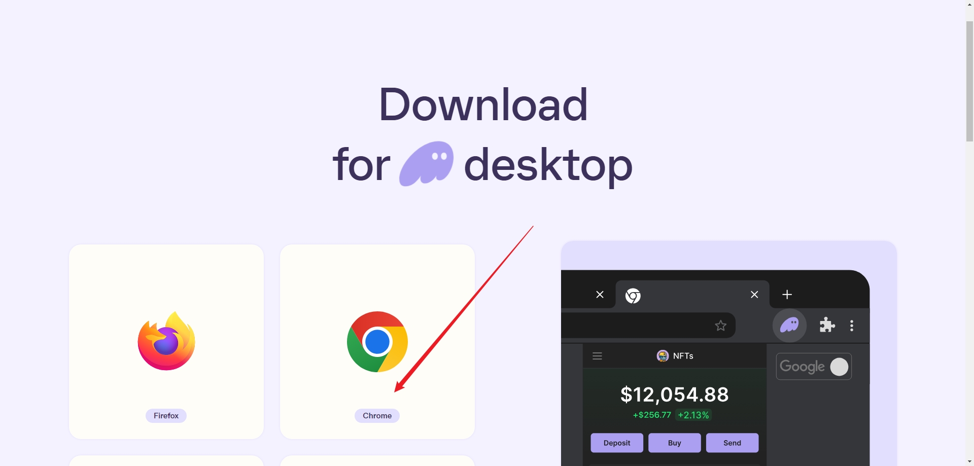 1.まず、幻影ウォレットPhantomの公式ウェブサイト:https://phantom.app/downloadを開き、「Chrome」ブラウザをクリックしてください