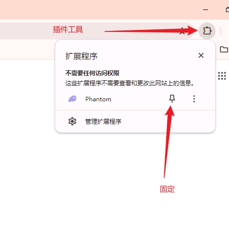 これで幻影ウォレットのインストールと登録が完了しました。右上角のプラグインアイコンを探してウォレットを見つけ、固定することができます。