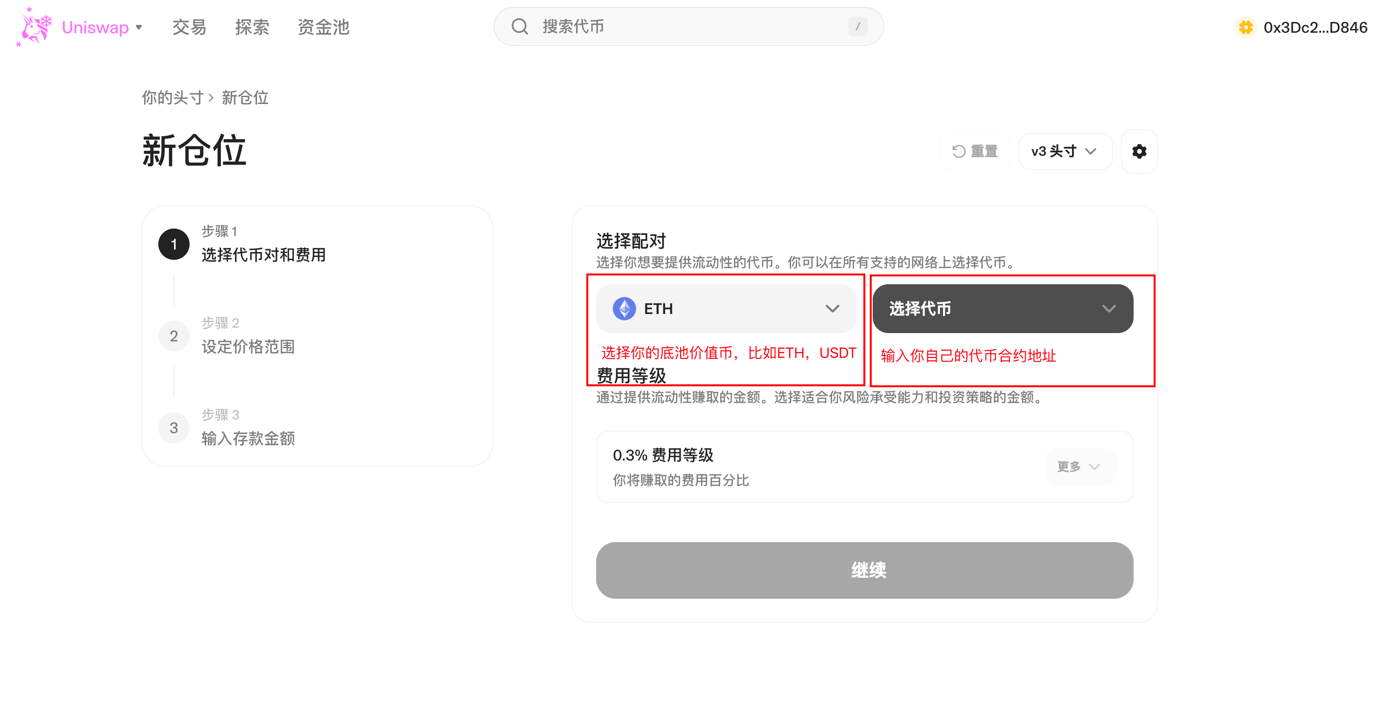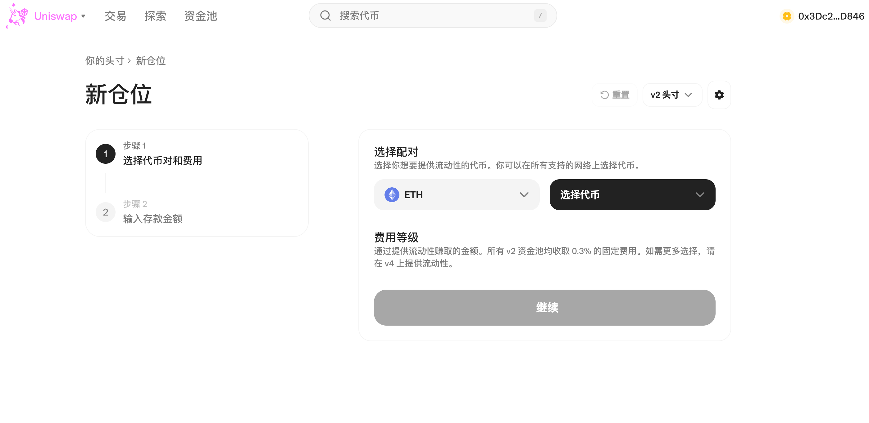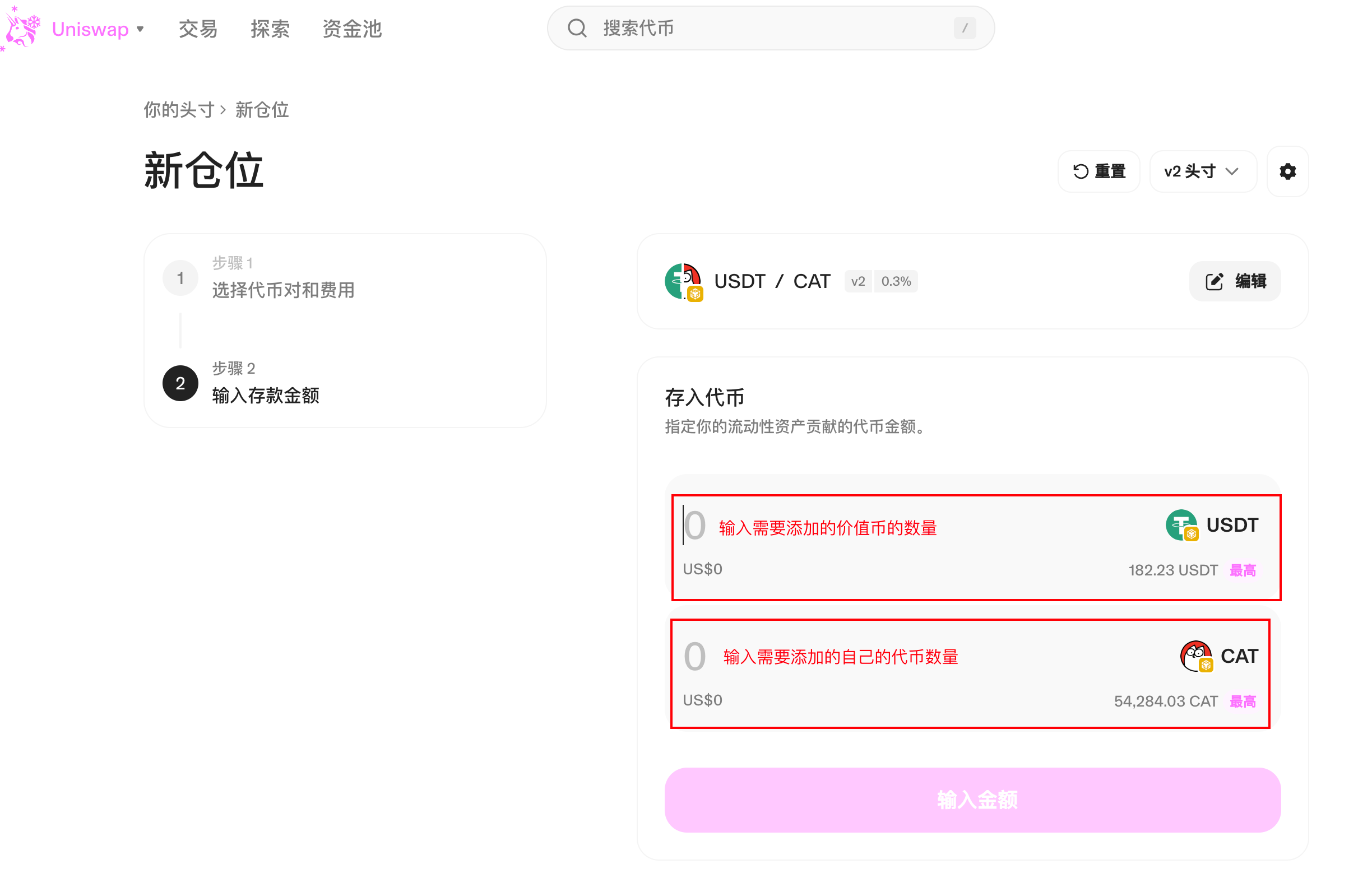 クリックしてUniswapに流动性を追加するページに移動：[Uniswap](https://app.uniswap.org/positions/create/v2)