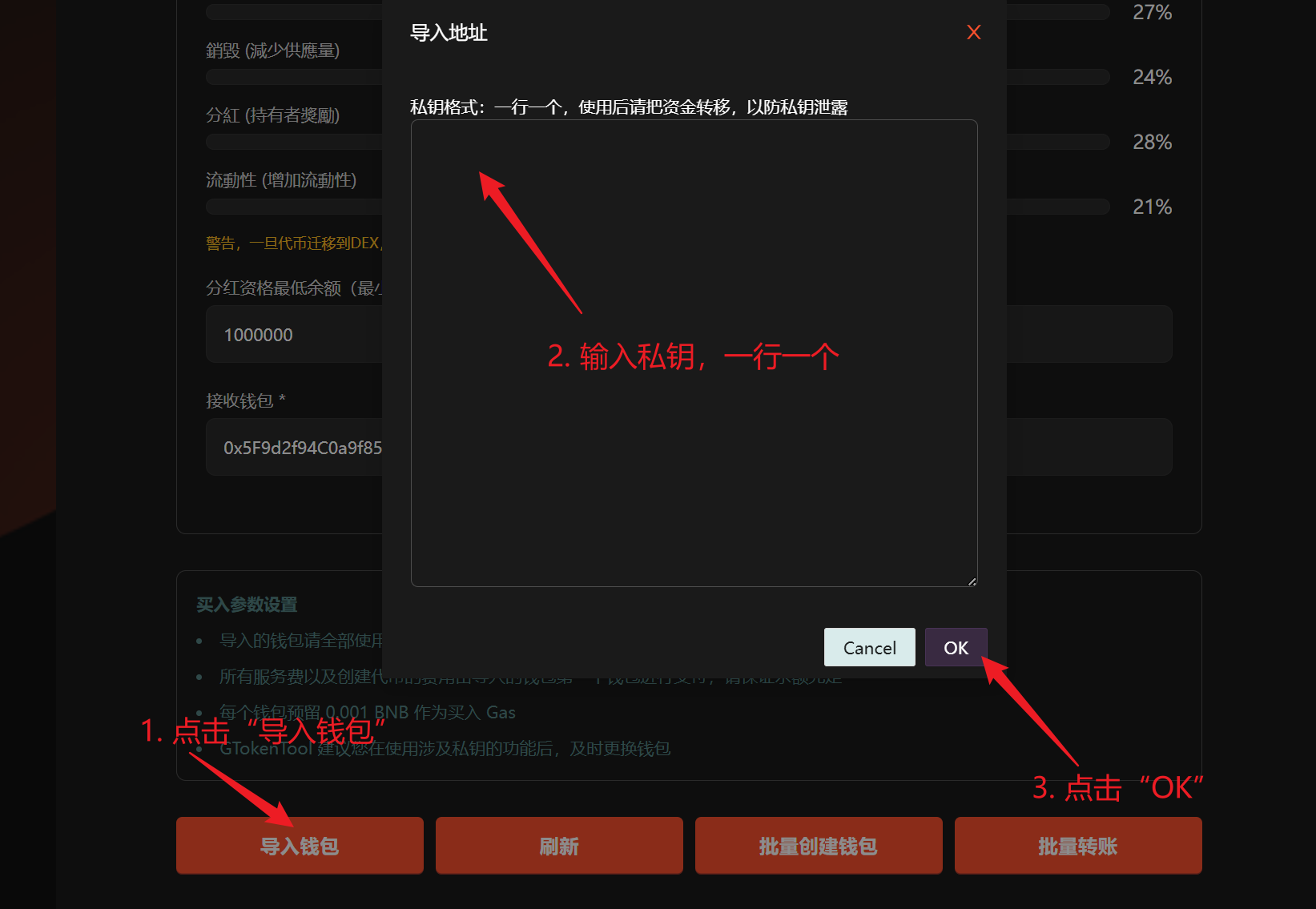 * 每个钱包预留 0.001 BNB 作为买入 Gas。