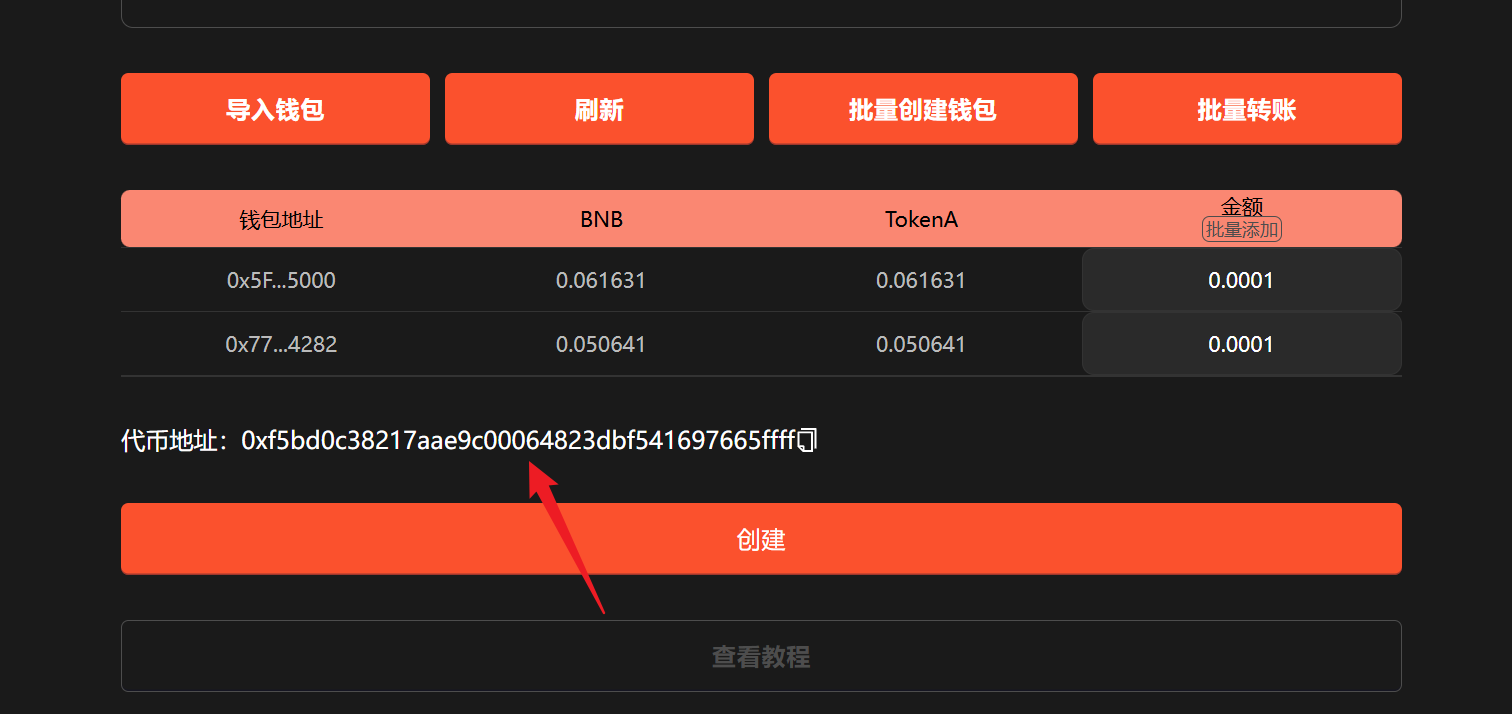 * 所有服务费以及创建代币的费用由导入的钱包第一个钱包进行支付，请保证余额充足。