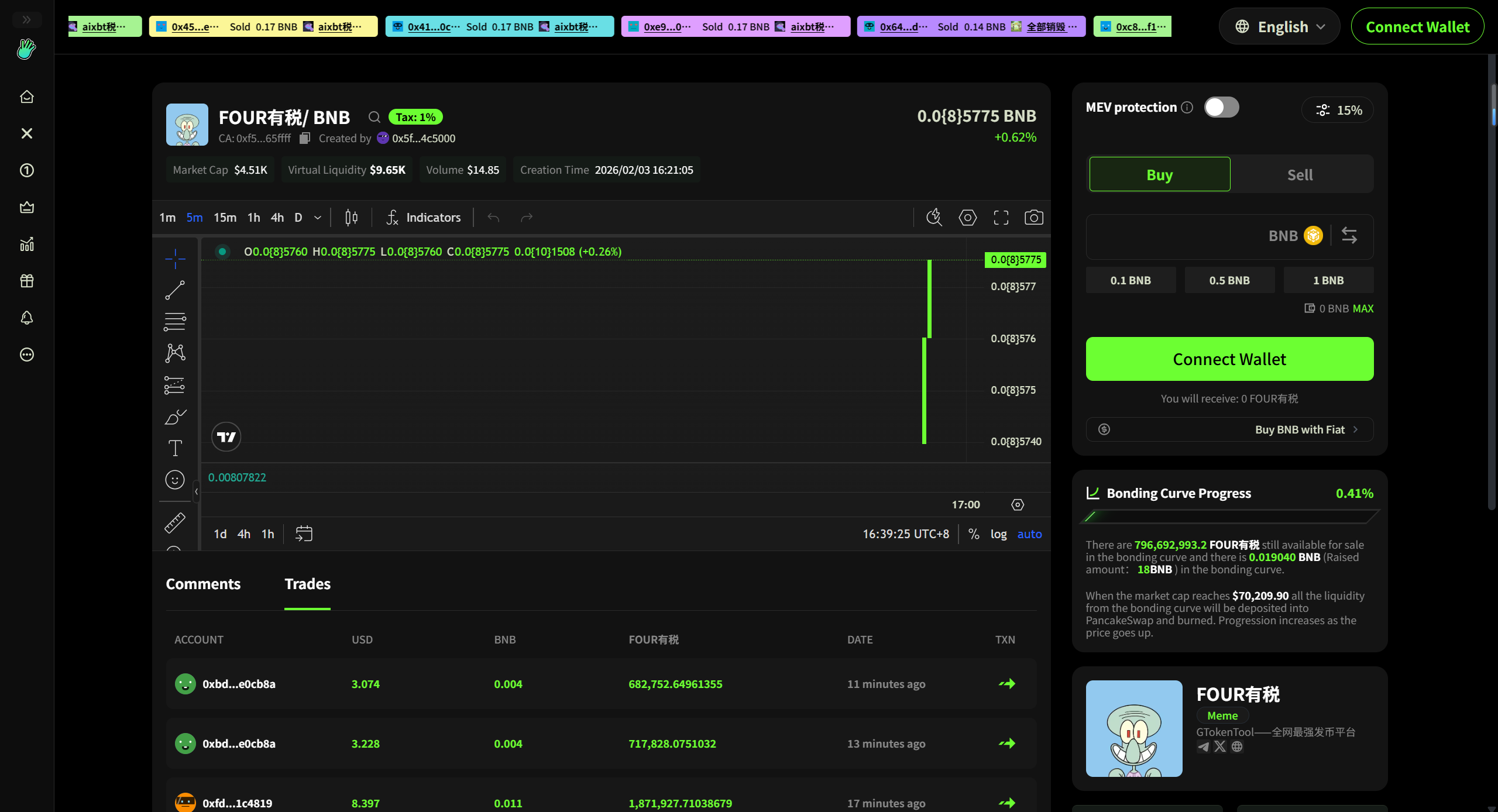 **Four.Meme创建代币并买入 | 简化交易流程 | 抢得交易先机｜全网最低费用**
