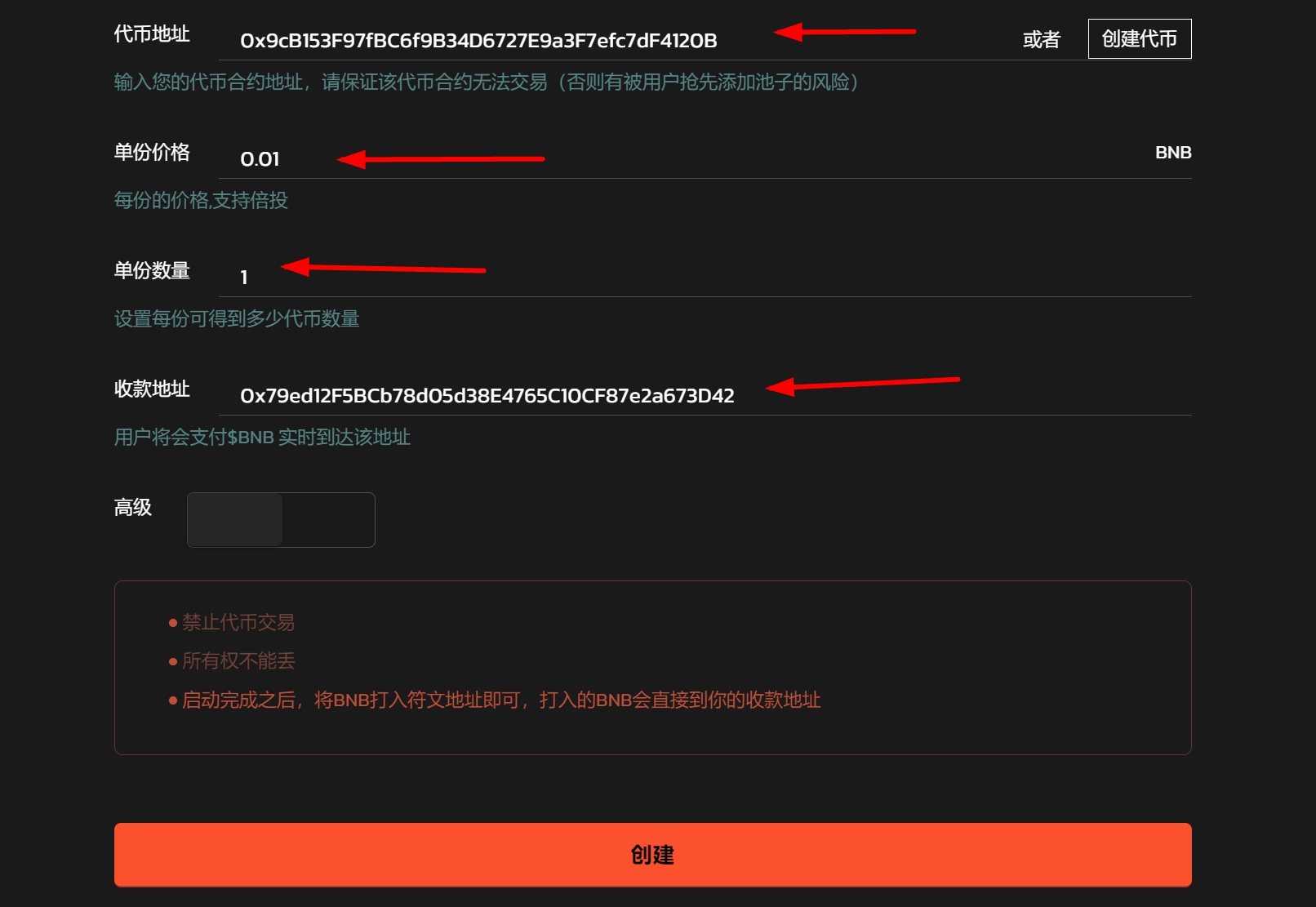 点击 “确认创建” ,在小狐狸钱包上支付gas费,就完成了。