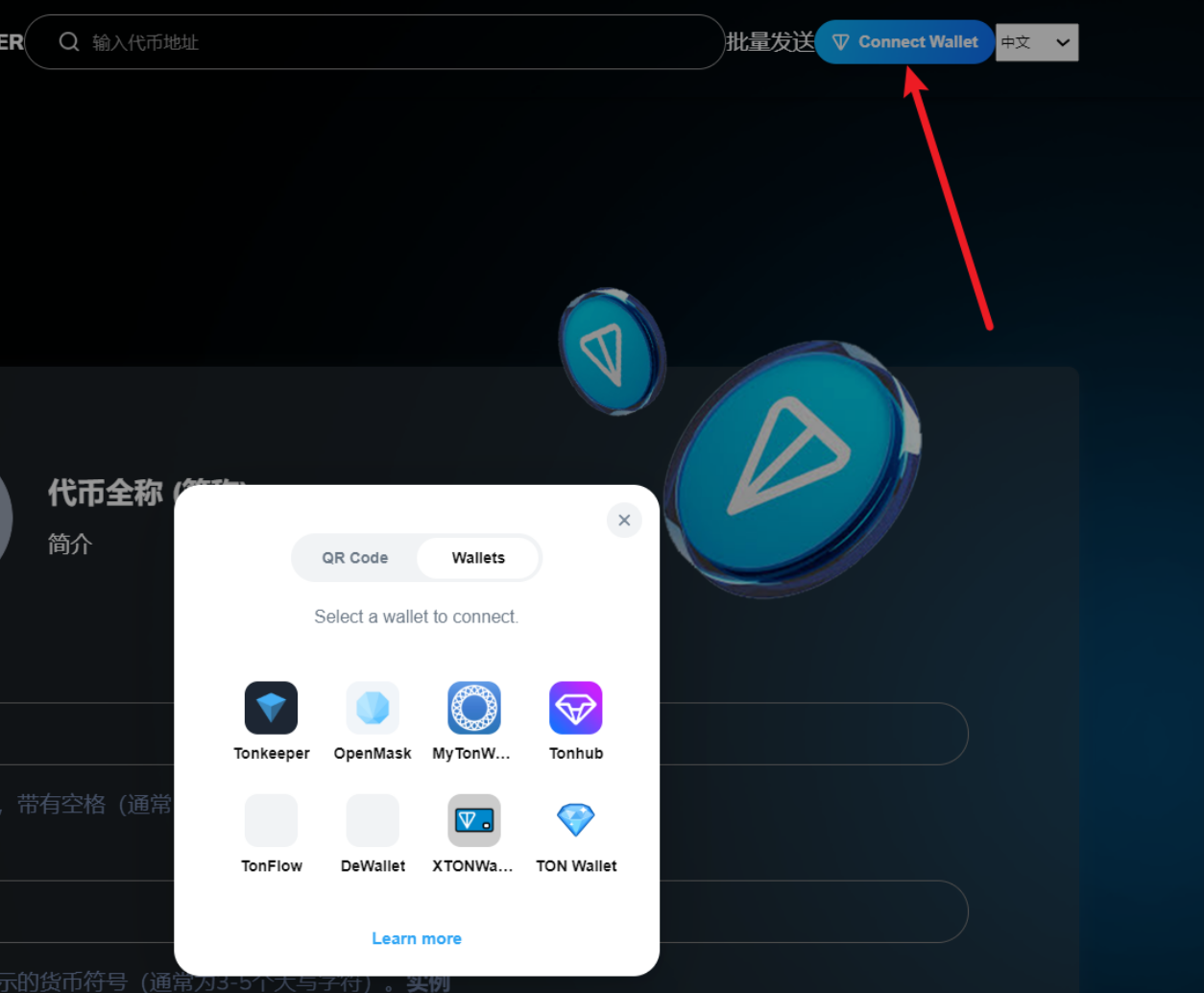 ### 2.在[Ton链一键发币](https://docs.gtokentool.com/ton-jiao-cheng/ton-lian-yi-jian-fa-bi-jiao-cheng)