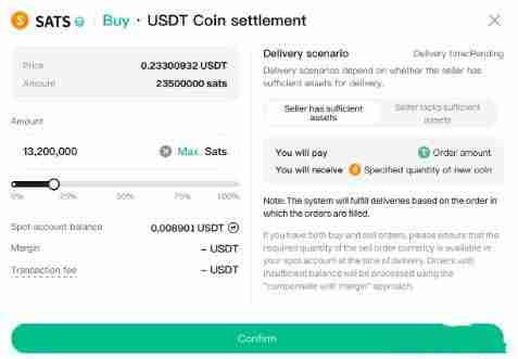 在指定的交割时间之前，卖家必须确保其现货帐户中有所需数量的新代币。交割完成后，对应的代币将转入买方现货帐户，扣除费用后资金会转入卖方帐户。