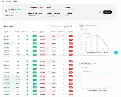步骤3：在该页面中，您可以在画面右下角找到该代币的历史价格、交易历史、市场价格走势以及深度等资讯。