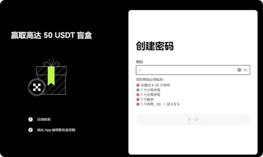 6、创建密码需要符合长度为 8-32 个字符、1 个小写字母、1 个大写字母、1 个数字、1 个符号，如：!@ # $ %等条件