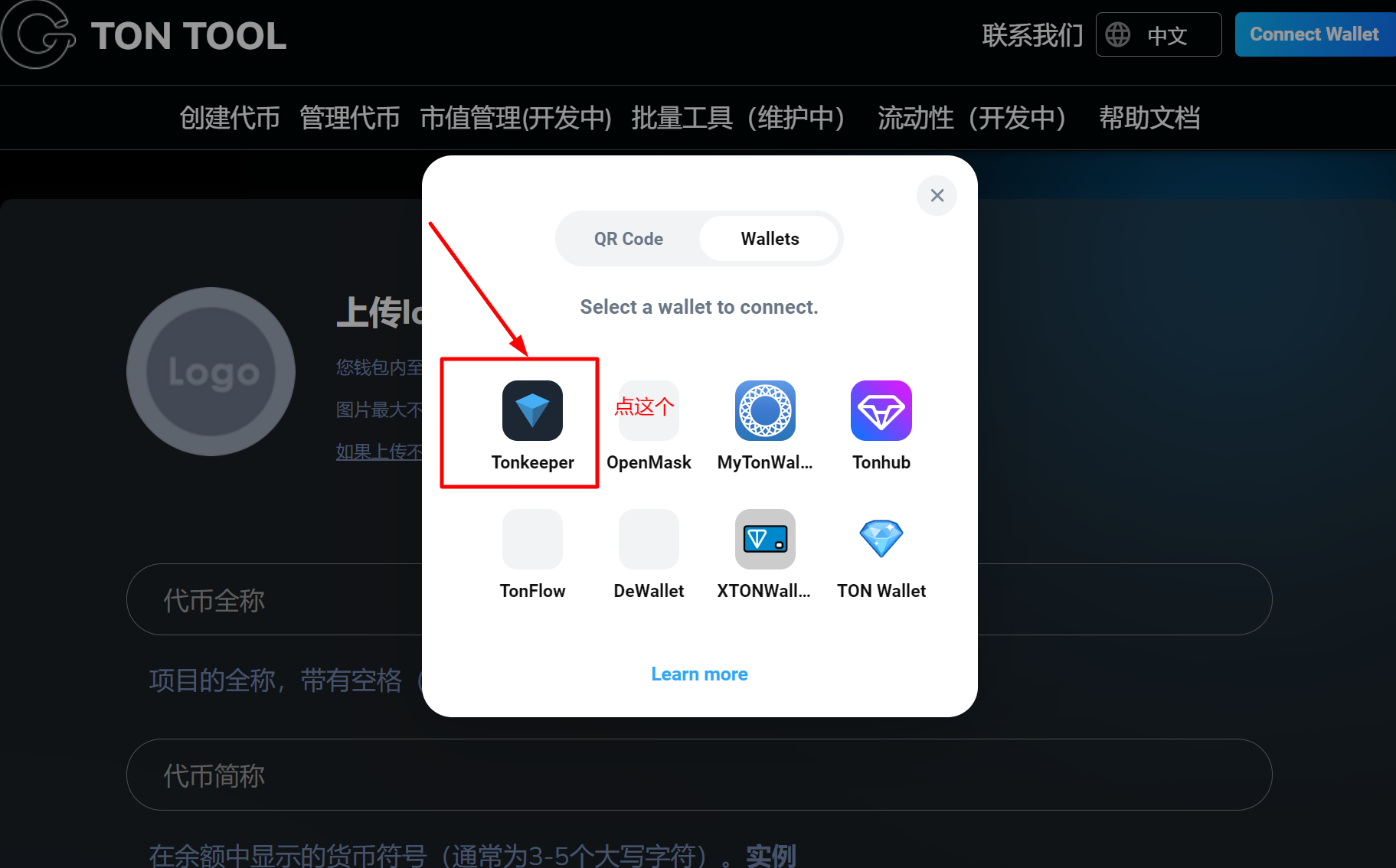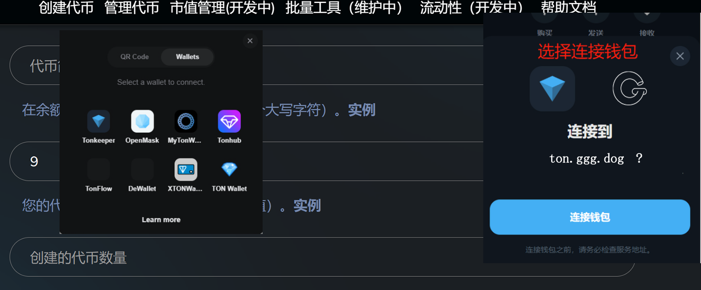 ### 1、连接Tonkeeper钱包