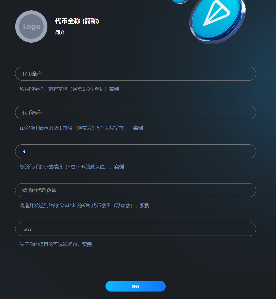 ### 2、填写代币信息