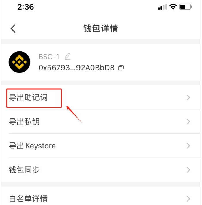 3、进入页面后，点击导出助记词就可以查看。注：“导出助记词”需输入钱包密码