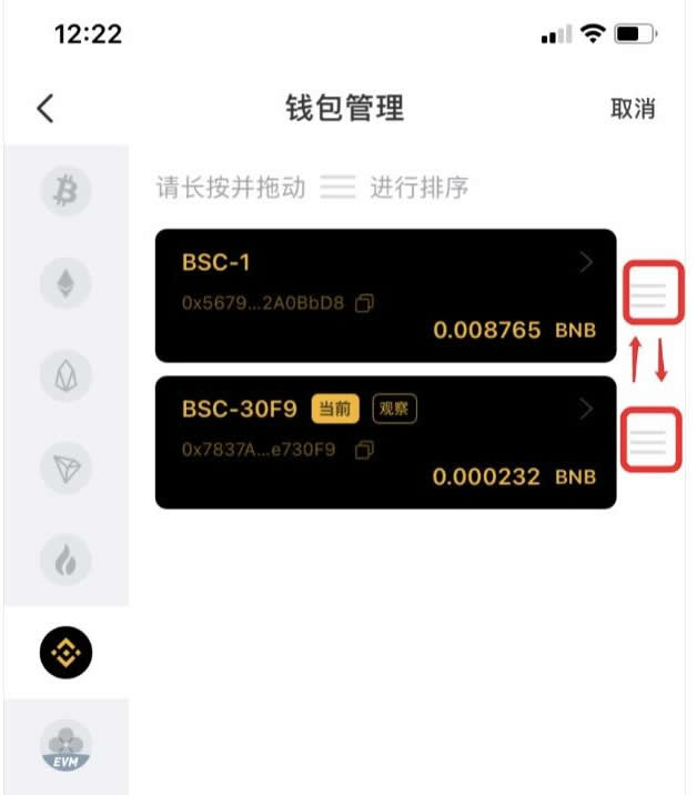 2、选择要查看的钱包并点击