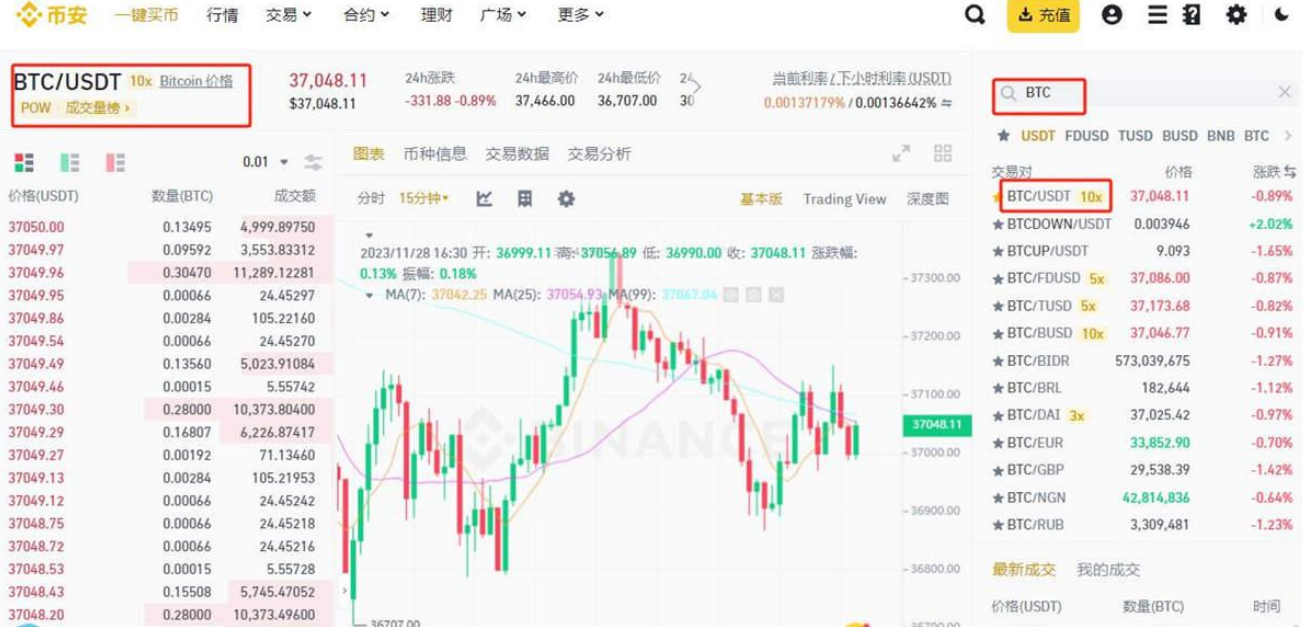 2、点击【逐仓】，选择交易对BTC/USDT。