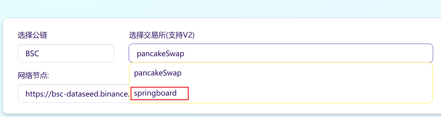 * **选择交易所：**&#x73;pringboard