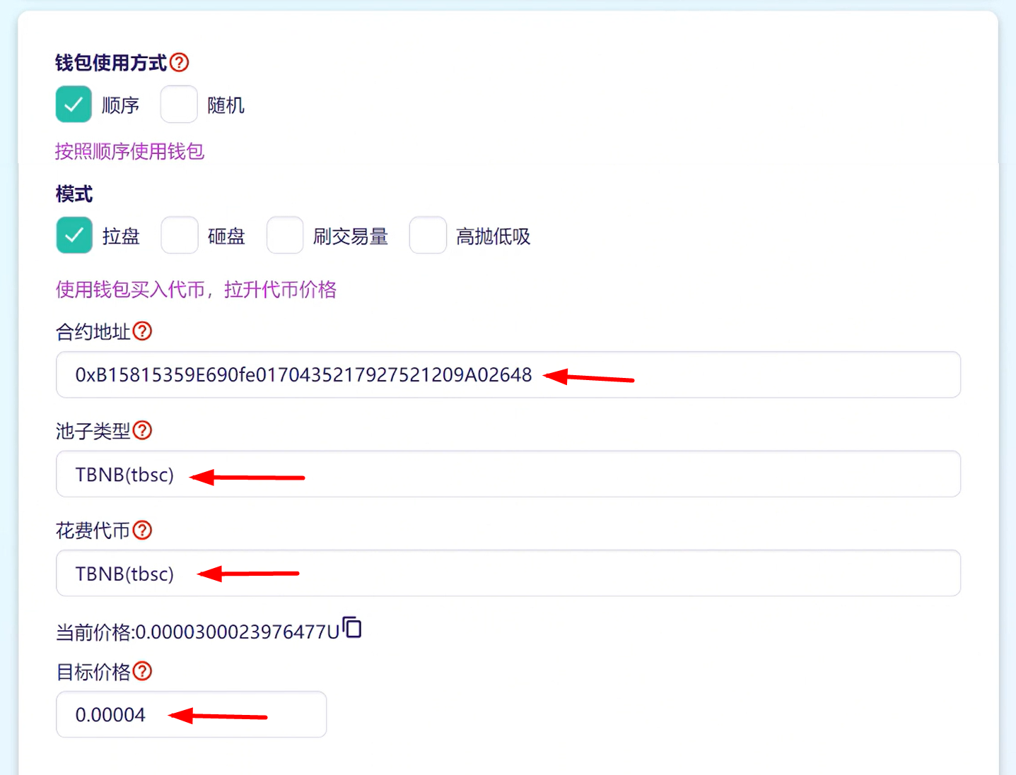 * **目标价格：**&#x30;.00004（因为我们选择的是拉盘，所以目标价格必须高于当前价格）