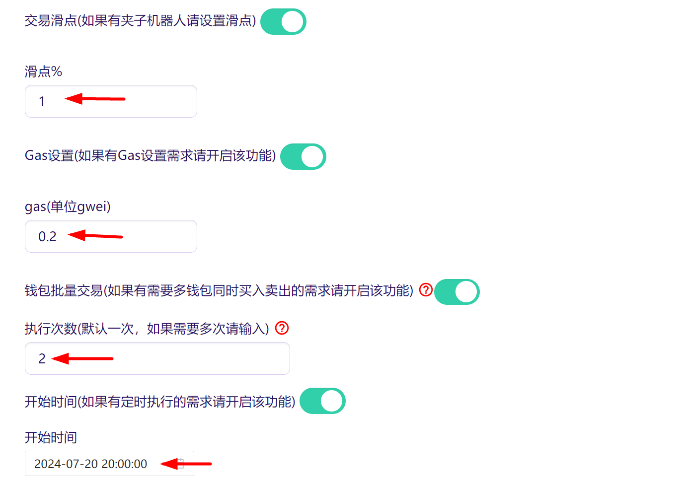 钱包批量交易(如果有需要多个钱包同时买入卖出，请开启该功能)