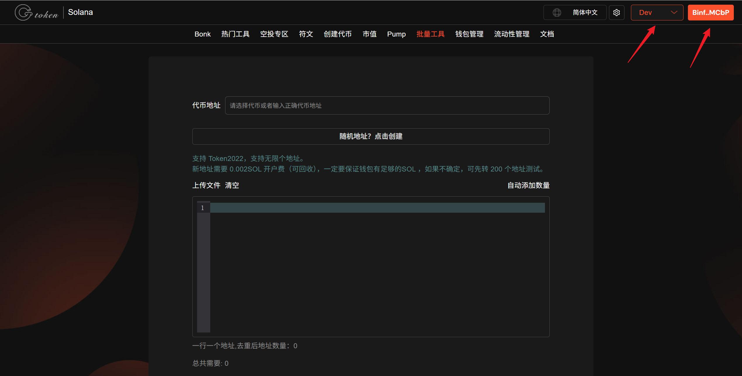 批量转代币页面：<https://sol.gtokentool.com/zh-CN/batchTool/batchTransfer/Token> ，