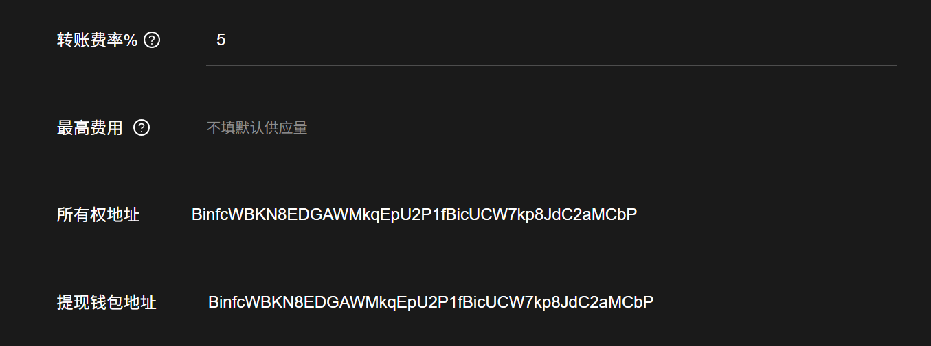 **所有权地址：**&#x63A7;制此代币的所有权限，默认为当前连接的钱包地址。