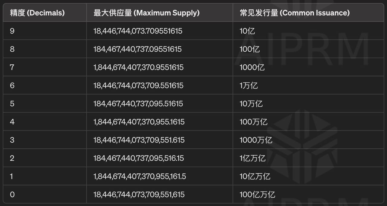 **代币精度：**&#x4EE3;币的精度位数，默认为9，精度与你能填写的最大总供应量有关。