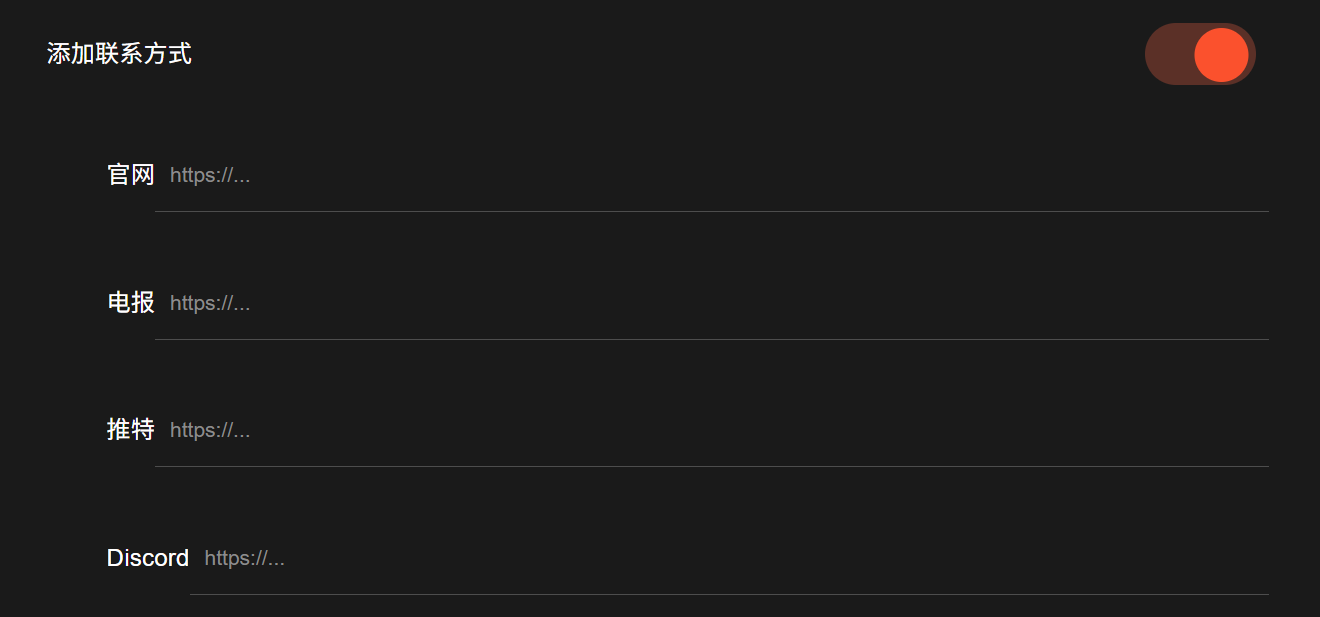 如果你想添加联系方式等，可以点击打开“`添加联系方式`”按钮，选择需要填写的内容进行填写。