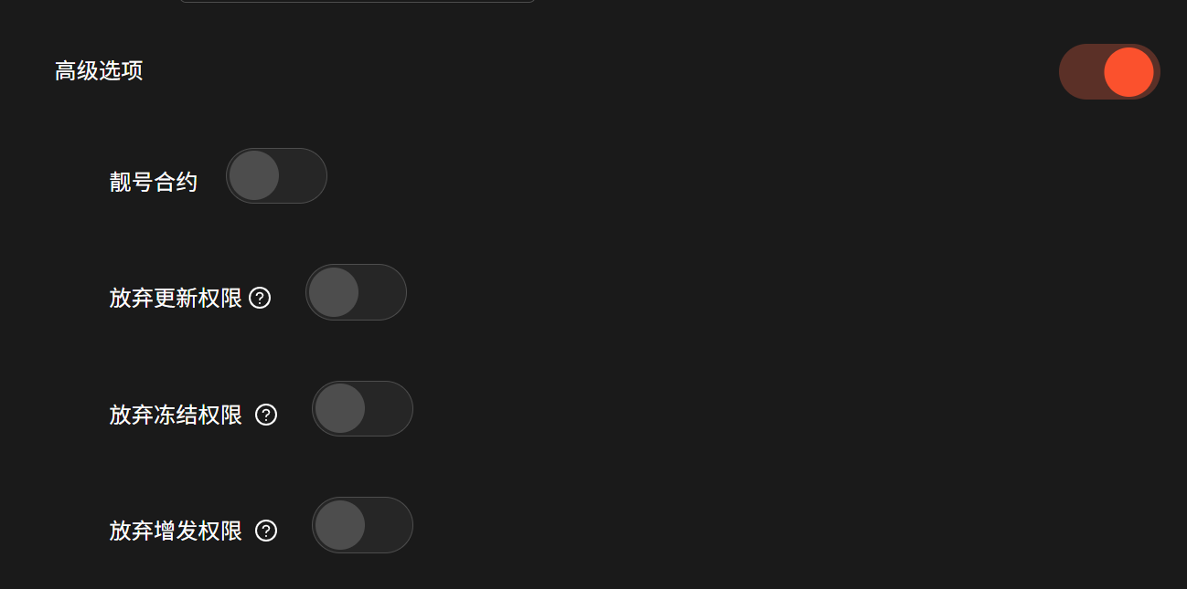 **不可转账（灵魂绑定代币）**：默认关闭，使代币不可转让给其他地址，通常适用于独特成就等类型项目。