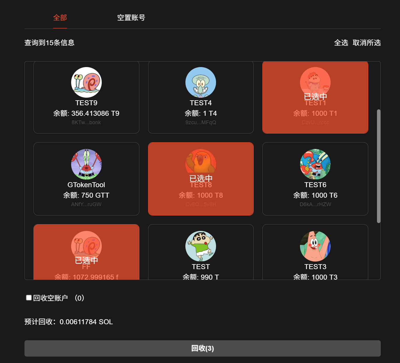 2. 回收的SOL是通过关闭存储该代币的帐户来实现的，无论帐户持有1个还是100000个代币，回收金额都是相同的。