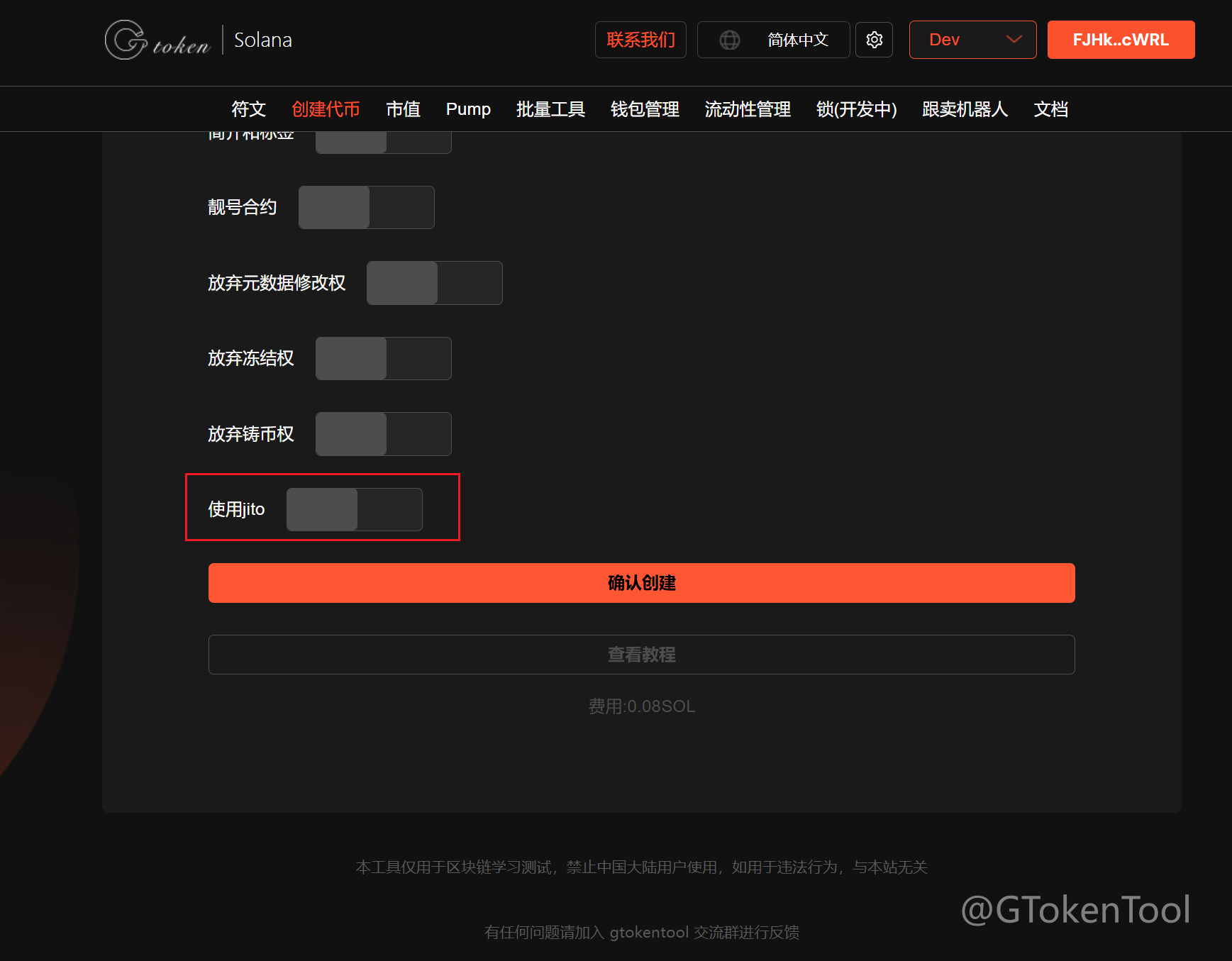 GTokenTool | 创建代币、批量空投和做市机器人等Solana工具集