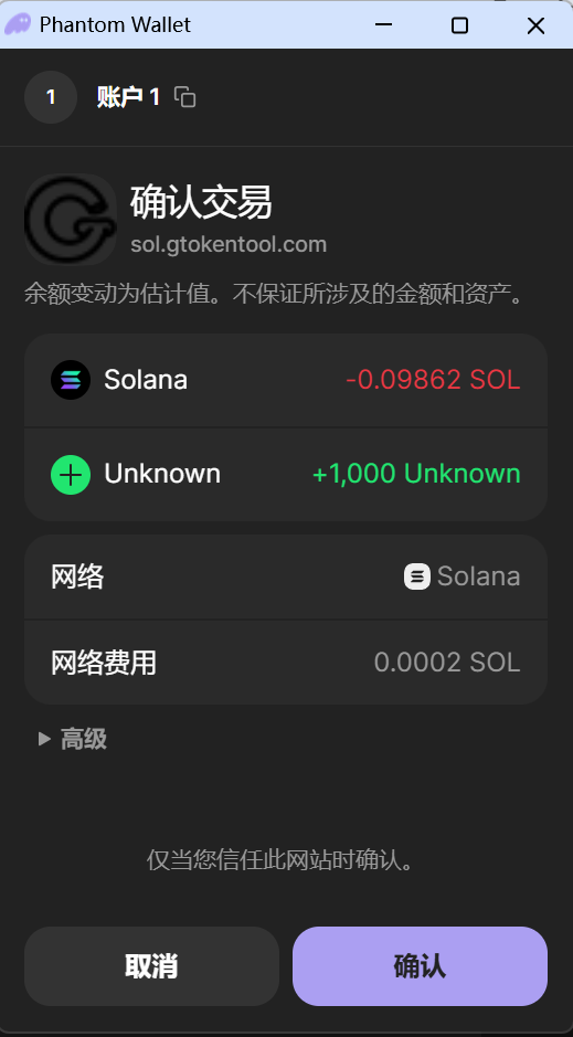 7.点击"确认创建",创建Solana发币